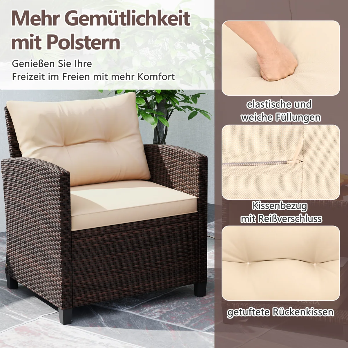 - Kiekvienoje kėdėje yra sėdynės ir nugaros pagalvėlės su užtrauktuku užsegamais užvalkalais.