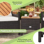 - Medžiagos: PE rotangas, metalas, akacijos medis, kempinė, poliesterio audinys.