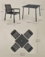 Šis elegantiškas ir funkcionalus sodo baldų komplektas yra puikus pasirinkimas jūsų lauko erdvei. Sukurtas iš aukštos kokybės medžiagų, jis užtikrina ilgaamžiškumą ir patogumą, o jo modernus dizainas puikiai dera su bet kokiu sodo ar terasos interjeru.