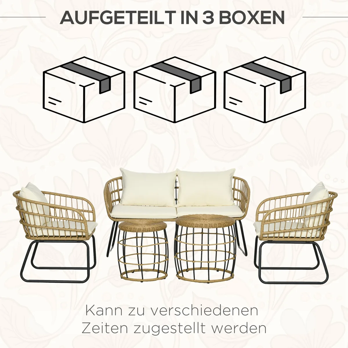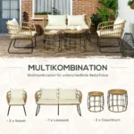 Pagražinkite savo sodą ir paverskite savo namų išorę tokia pat patrauklia kaip ir viduje. Šis 5 dalių Outsunny sodo baldų komplektas susideda iš tvirto metalinio rėmo ir pynimo iš atsparaus oro sąlygoms PE rotango. Minkštai paminkštintos pagalvėlės užtikrina patogų sėdėjimą. Dekoratyvu ir funkcionalu – su šiais poilsio baldais galite sukurti jaukią aplinką, kuria galėsite džiaugtis jūs ir jūsų šeima ištisus metus.