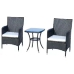 - ✔ 3 dalių sėdimų vietų grupė su dviem kėdėmis ir stalu, skirta viduje ir lauke