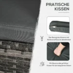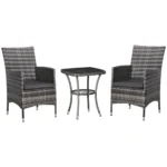 Su šiuo balkono baldų komplektu dviems žmonėms iš Outsunny savo kiemui ir balkonui suteiksite stiliaus ir komforto. Iš rotango atrodančio rotango holo komplektą sudaro dvi kėdės ir stalas su grūdinto stiklo stalviršiu. Į pristatymą taip pat įeina dvi storos paminkštintos pagalvėlės su skalbiamais užvalkalais. Naudodami sėdimąją erdvę galėsite tikrai patogiai įsitaisyti gerdami kavą ar vyną.