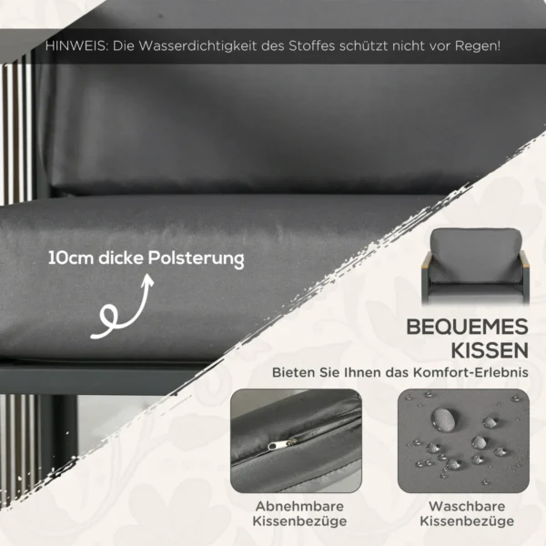Šis 3 dalių rotango sodo baldų komplektas iš Outsunny yra dekoratyvinis akcentas! Metalinis rėmas, padengtas aukštos kokybės PE rotangu, užtikrina ilgaamžiškumą. Su 10 cm storio sėdynių pagalvėlėmis papildomam patogumui, mediniu dekoru ant kėdžių porankių ir kavos staliuko, kad būtų skoningai natūralus. 3 dalių sodo rinkinys „Outsunny“ yra būtinas bet kokiam sodo ar terasos zonoje ir suteiks jūsų lauko erdvei komfortą ir stilių.