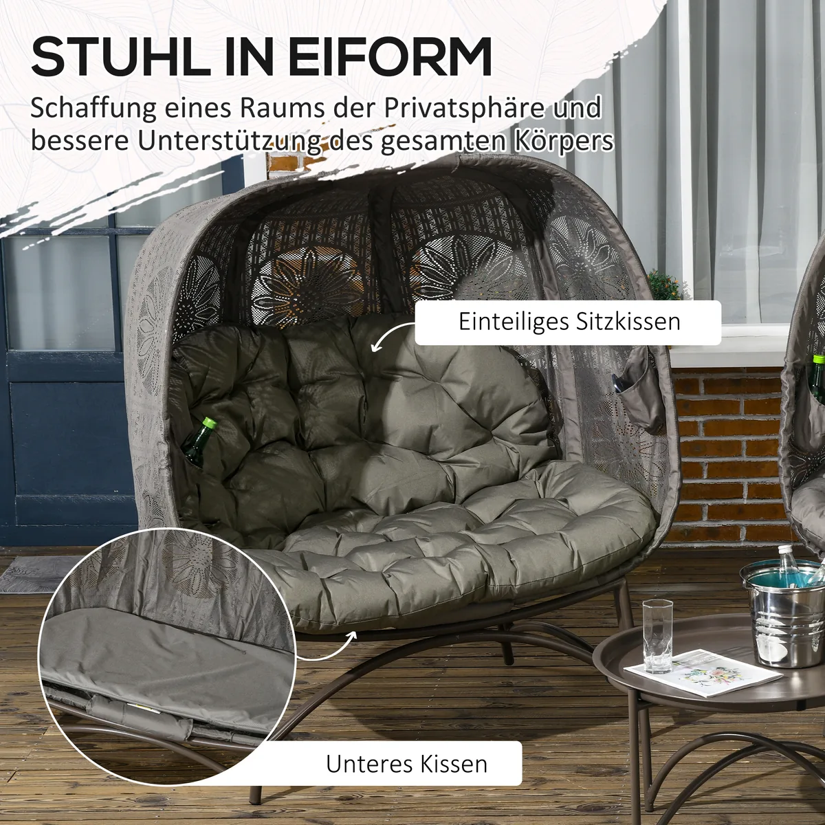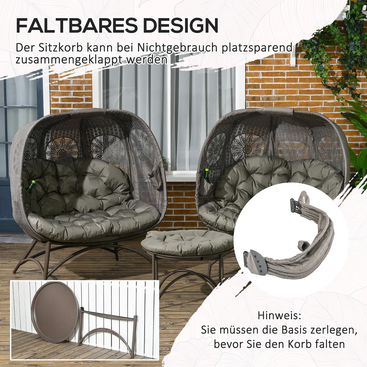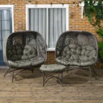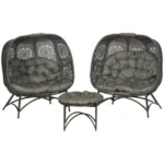 Atpalaiduokite stilingai lauke ant šio Outsunny pintų kėdžių rinkinio. Dėl šiuolaikiško dizaino ir aukštos kokybės medžiagų jūsų svetainės zona traukia akį. Jei pageidaujate, stalą taip pat galite naudoti kaip taburetę, kad būtų patogiau. Išlenktas sėdynės apvalkalas kviečia atsipalaiduoti, jį palaiko minkštos sėdynės ir nugaros pagalvėlės. Praktiška: rinkinys sulankstomas ir lengvai laikomas. Tvirtas metalinis rėmas užtikrina patikimą laikymą. Pasilepinkite grynu komfortu lauke!