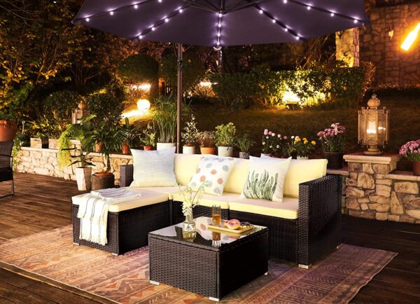 Gražus oras visus išvilioja į gryną orą. Ar norėtumėte mėgautis šilta saule savo sode? Pasilepinkite šiuo sodo baldų komplektu ir kokybiškai praleiskite laiką lauke su savo artimaisiais! Patogiau nei bet kada! Pasnauskite sode, mėgaukitės kavos pertraukėle terasoje, stebėkite saulėlydį su savo artimaisiais… Šis lauko baldų komplektas įgyvendins visus jūsų planus, o didelės paminkštintos sėdynės užtikrina aukštą komfortą.