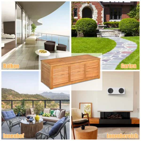 Sodo daiktadėžė 120x45x45 cm, šviesiai rudos spalvos, pagaminta iš natūralios akacijos medienos su tikmedžio aliejaus apdaila. Tai patvari ir erdvi sodo laikymo dėžė, tinkama įvairiems lauko įrankiams, pagalvėlėms ar žaislams susidėti. Dėžę galima naudoti ir kaip sėdynę, ji puikiai integruosis bet kurioje sodo ar kiemo erdvėje.
