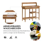 Jei ieškote praktiško ir erdvaus darbo stalo darbui su augalais, šis Outsunny sodo stalas jums puikiai tiks! Praktiškas darbo stalas dėl lentynų suteikia pakankamai vietos jūsų vazonams ir augalams. Stalčiuje yra daug vietos jūsų įrankiams ir sodo reikmenims. Darbiniame paviršiuje taip pat yra praktiškas padėklas sodo žemei ir atliekoms. Dėl to sodininkystė yra malonumas!