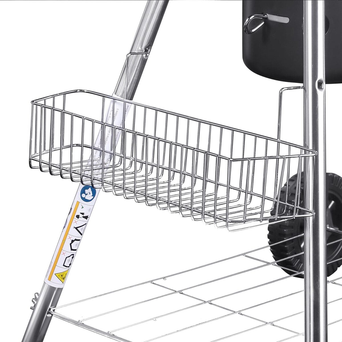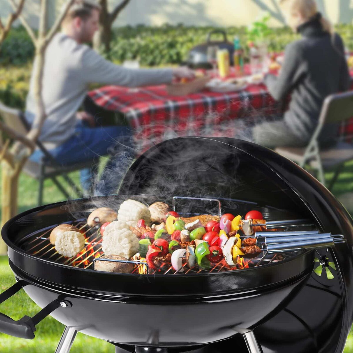 Su dangteliu, termometru, laikymo lentyna ir laikymo krepšeliu – viskas, ko reikia tobulam griliui! Su dangteliu griliu galima greitai pašildyti iki reikiamos temperatūros, o naudojant ventiliacinį diską, tai taip pat galima lengvai reguliuoti. Temperatūrą galima nuskaityti iš dangtelio įmontuoto termometro, kuris rodo ir Celsijaus, ir Farenheito laipsnius. Prie kojų pritvirtintos laikymo grotelės ir laikymo krepšelis, kurį galima naudoti ant grotelių keptam maistui arba grilio įrankiams.