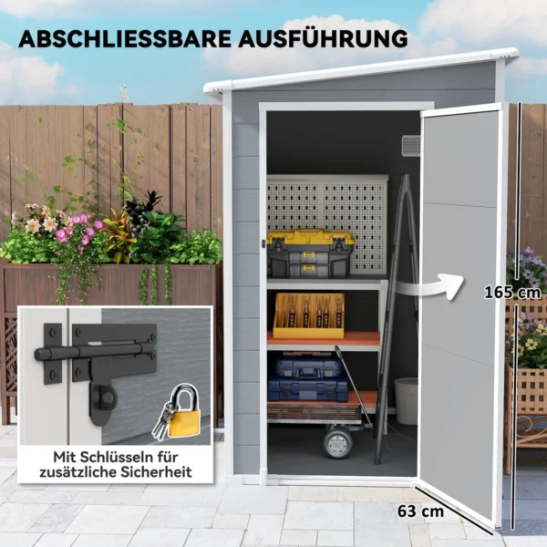 Pagamintas iš patvaraus aliuminio, šis metalinis įrankių namelis iš Outsunny atlaikys elementus, o jo vidus yra 1 x 1,28 m, joje bus pakankamai vietos visiems būtiniems daiktams. Praktiškose sodo namelio duryse yra užraktas ir spyna, kad visada žinotumėte, jog jūsų vertingi daiktai yra apsaugoti. Yra trys raktai. Sukurkite tvarką ir saugumą savo sode su šiuo stilingu sodo įrankių nameliu!