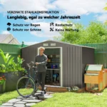 • ✔ Didelis sodo įrankių namelio vidus suteikia pakankamai vietos įvairiems sodo įrankiams ir stumdomoms durims sodo namelio, kad būtų galima greitai ir lengvai pasiekti