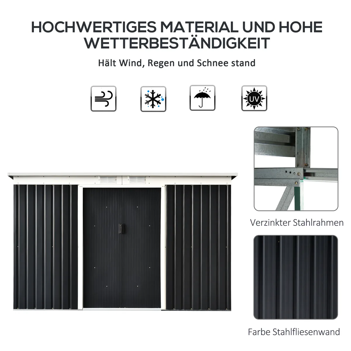 Nesvarbu, ar tai vejapjovė, sodo įrankiai ar sodo baldai – įrankių namelyje viskas bus sausa ir švari. Tvirta konstrukcija iš dengto metalo yra atspari oro sąlygoms ir nešvarumus. Praktiškos stumdomos durys leidžia lengvai patekti į vidų bet kuriuo metu. Dviejų ventiliacinių grotelių dėka sodo namelis gerai vėdinamas, kad nesusidarytų drėgmė ar nemalonūs kvapai. Su šiuo Outsunny įrankių nameliu lengva tvarkyti daiktus.