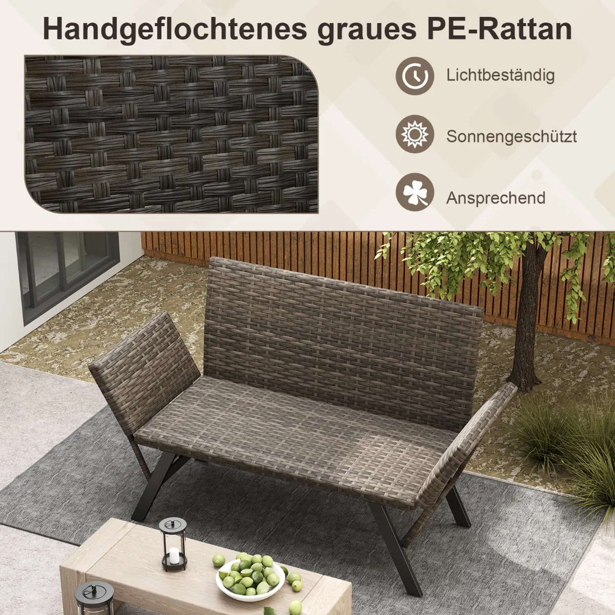 - Rankomis austas pilkas PE rotangas, atsparus saulės spinduliams ir blukimui.