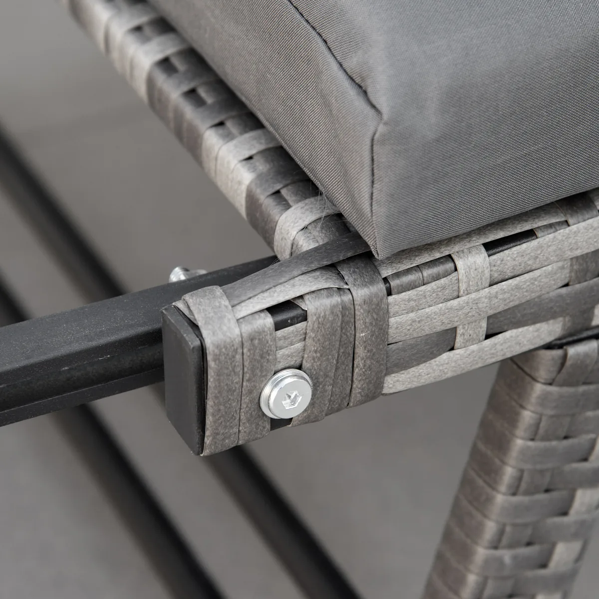 • ✔ Nerūdijančio plieno rėmas su tvirtu, oro sąlygoms atspariu plastiku >< pamuštas rotangas