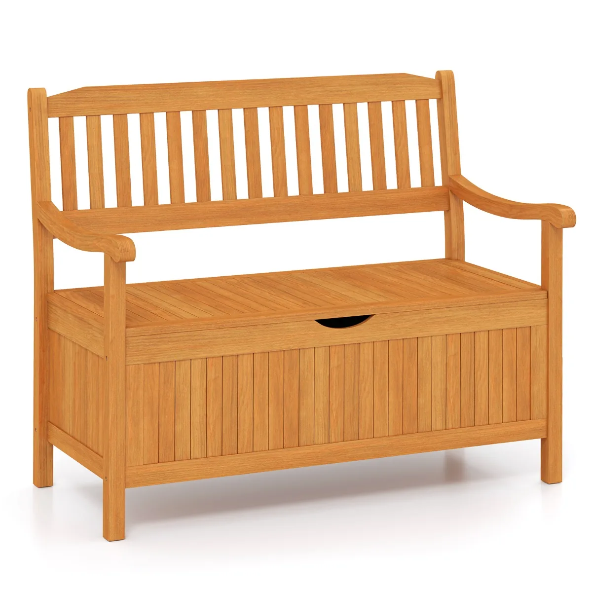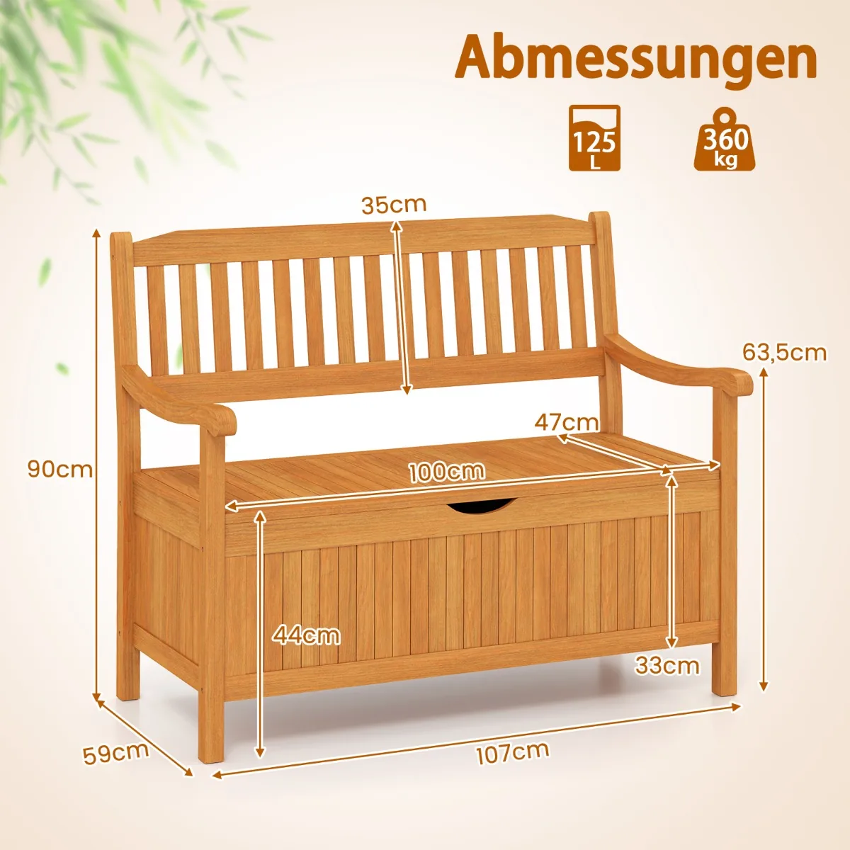 Sodo suoliukas 107x59x90 cm, šviesiai rudos spalvos, yra patogi ir funkcionali lauko sėdimoji vieta su papildoma daiktų laikymo vieta. Pagamintas iš tvirtos akacijos medienos, tinkamas naudoti sode, terasoje, balkone ar kitose lauko erdvėse.
