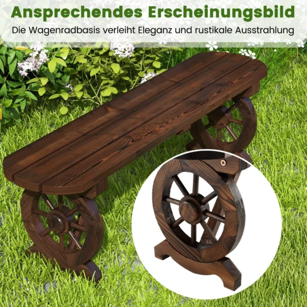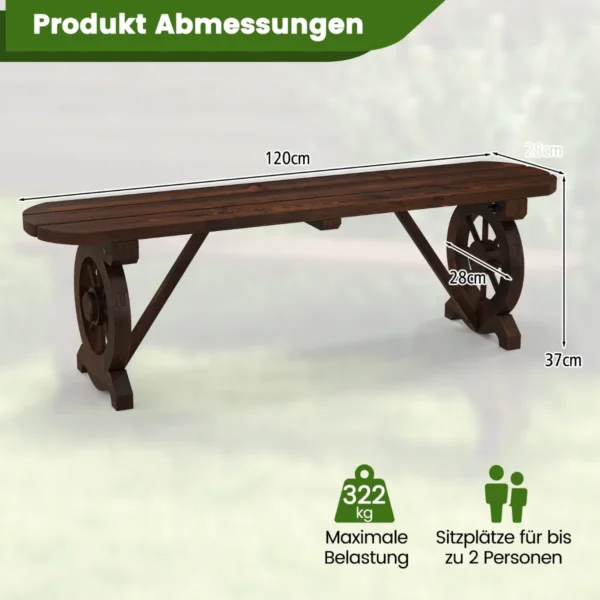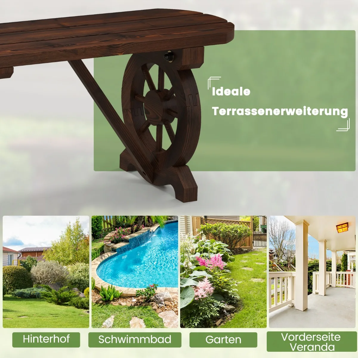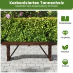 Sodo suoliukas 120x28x37 cm tamsiai rudos spalvos yra patvarus ir funkcionalus lauko baldas, pagamintas iš karbonizuotos eglės medienos. Jis puikiai tinka kiemui, sodui, verandai ar prie baseino, suteikiant patogią sėdėjimo vietą dviem žmonėms. Tamsiai ruda spalva dera su natūralia aplinka, o universalo ratų formos pagrindas užtikrina stabilumą.