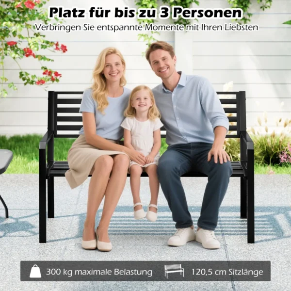 Sodo suoliukas 127x56x82 cm, juodos spalvos, yra praktiškas ir tvirtas pasirinkimas lauko erdvėms. Metalinis suoliukas skirtas sėdėjimui sode, terasoje ar prie baseino, užtikrinant stabilumą ir patogumą. Dėl ergonomiško dizaino ir atsparaus rėmo jis tinka ilgalaikiam naudojimui lauke.