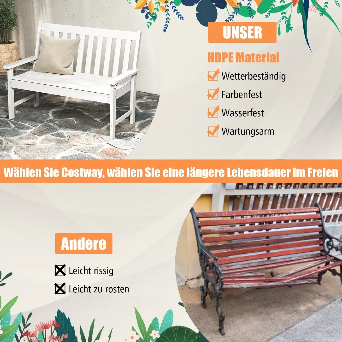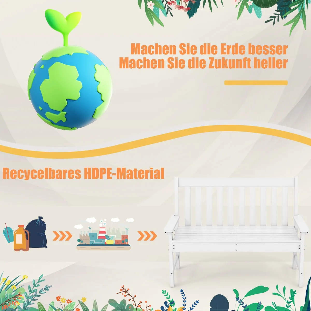 Sodo suoliukas 132x65x91 cm baltos spalvos – patvarus ir atsparus lauko sąlygoms. Šis lauko suoliukas pagamintas iš HDPE medžiagos, kuri nesideformuoja, nerūdija ir nereikalauja sudėtingos priežiūros. Dėl ergonomiško dizaino ir didelės svorio keliamoios galios jis puikiai tinka poilsiui kieme, sode ar verandoje.
