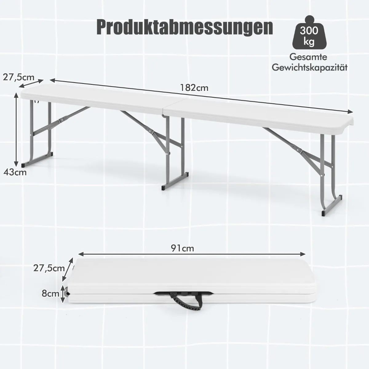 Sodo suoliukas 182×27,5×43 cm yra patogus ir stabilus sprendimas sėdėjimui lauke. Baltos ir pilkos spalvos sulankstomas suoliukas skirtas naudoti verandoje, sode, stovyklavietėje ar žaidimų aikštelėje. Jis talpina iki 3 žmonių ir yra lengvai transportuojamas dėl sulankstomos konstrukcijos.