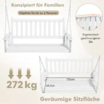 Sodo sūpynės 136x67x63cm, baltos/sidabrinės spalvos, puikiai tiks poilsiui lauke jūsų sode ar prieangyje. Tvirtos tuopos medienos konstrukcijos ir reguliuojamos metalinės grandinės užtikrina saugų ir patogų siūbavimą dviem žmonėms. Šios sūpynės lengvai kabinamos ant lubų, medžio ar sūpynių stovo.
