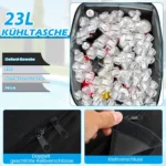 - Įmontuotas centrinis stalas su 2 puodelių laikikliais ir 23 l talpos nuimamas šaldymo krepšys su užtrauktukais.