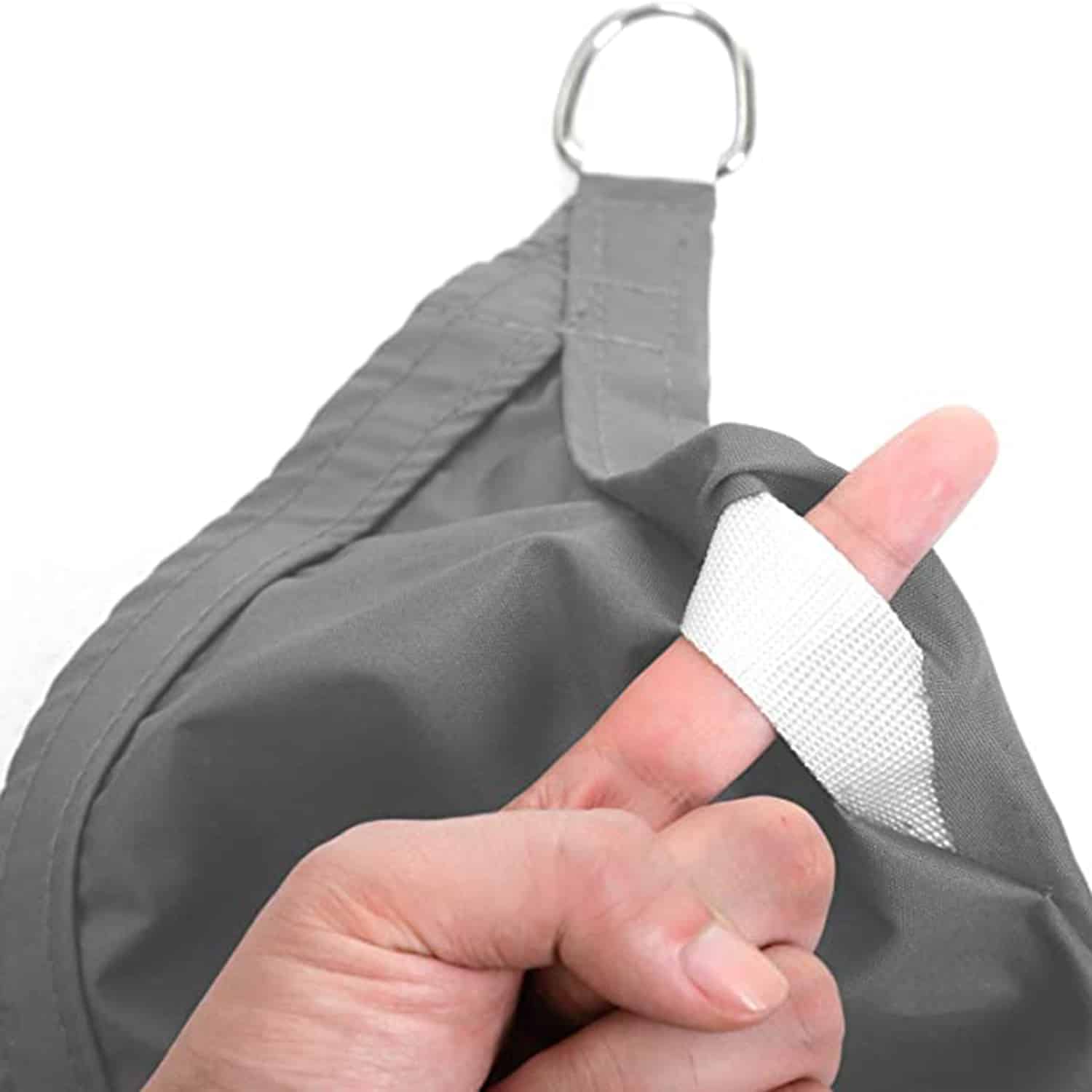 Didesnis saugumas dėl aukštos kokybės apdorojimo: Mūsų pasirinkta medžiaga yra aukštos kokybės, atsparus plyšimui poliesteris. Visuose kraštuose siūlėse burė buvo sutvirtinta specialia tvirta juostele, kuri buvo prisiūta, kad būtų užtikrintas didesnis stabilumas. Kampai taip pat kelis kartus sutvirtinti.