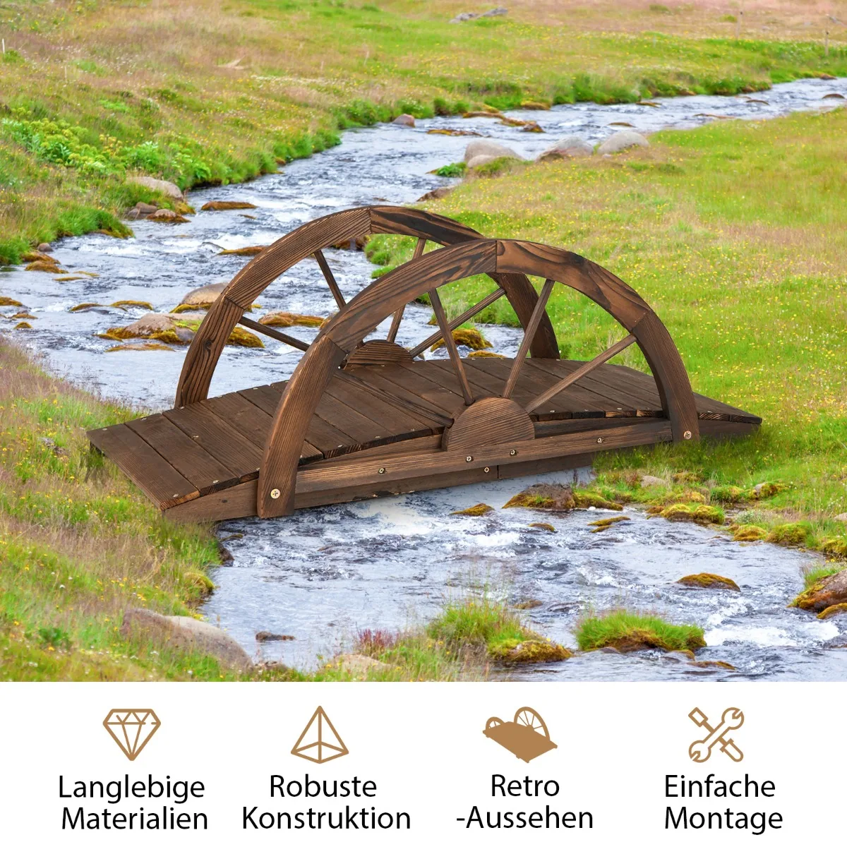 Medinis sodo tiltas 101,5×48,5x38cm rudos spalvos – praktiškas ir dekoratyvus sprendimas jūsų lauko erdvei. Pagamintas iš eglės medžio masyvo, šis tiltas tvirtas ir atsparus oro sąlygoms, todėl puikiai tinka sodui, kiemui ar tvenkinio apdailai.