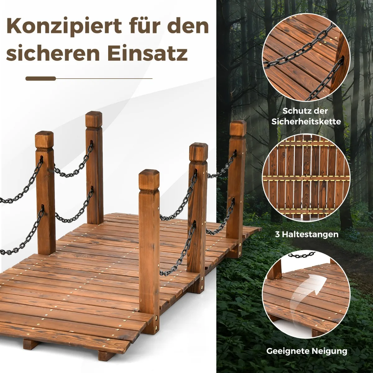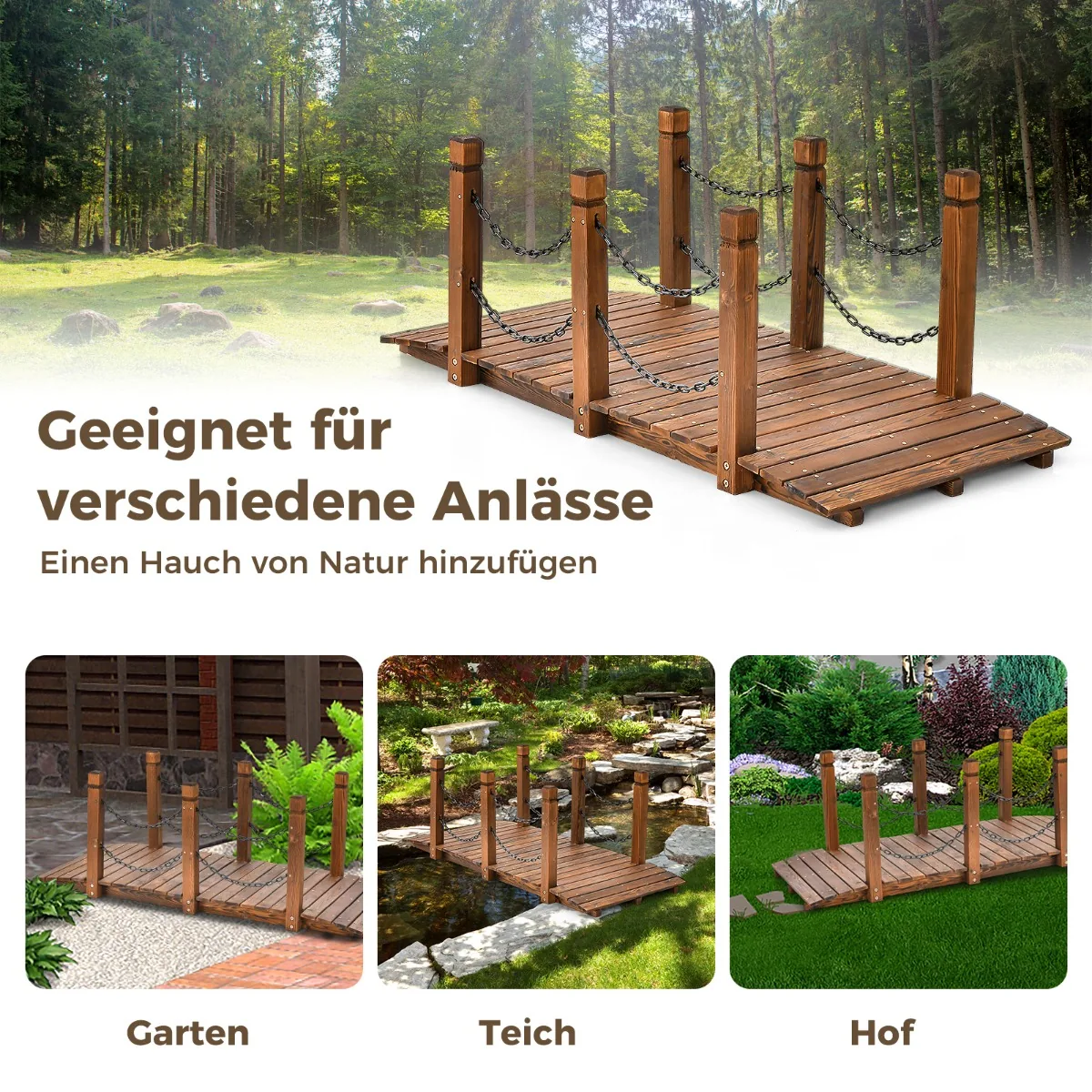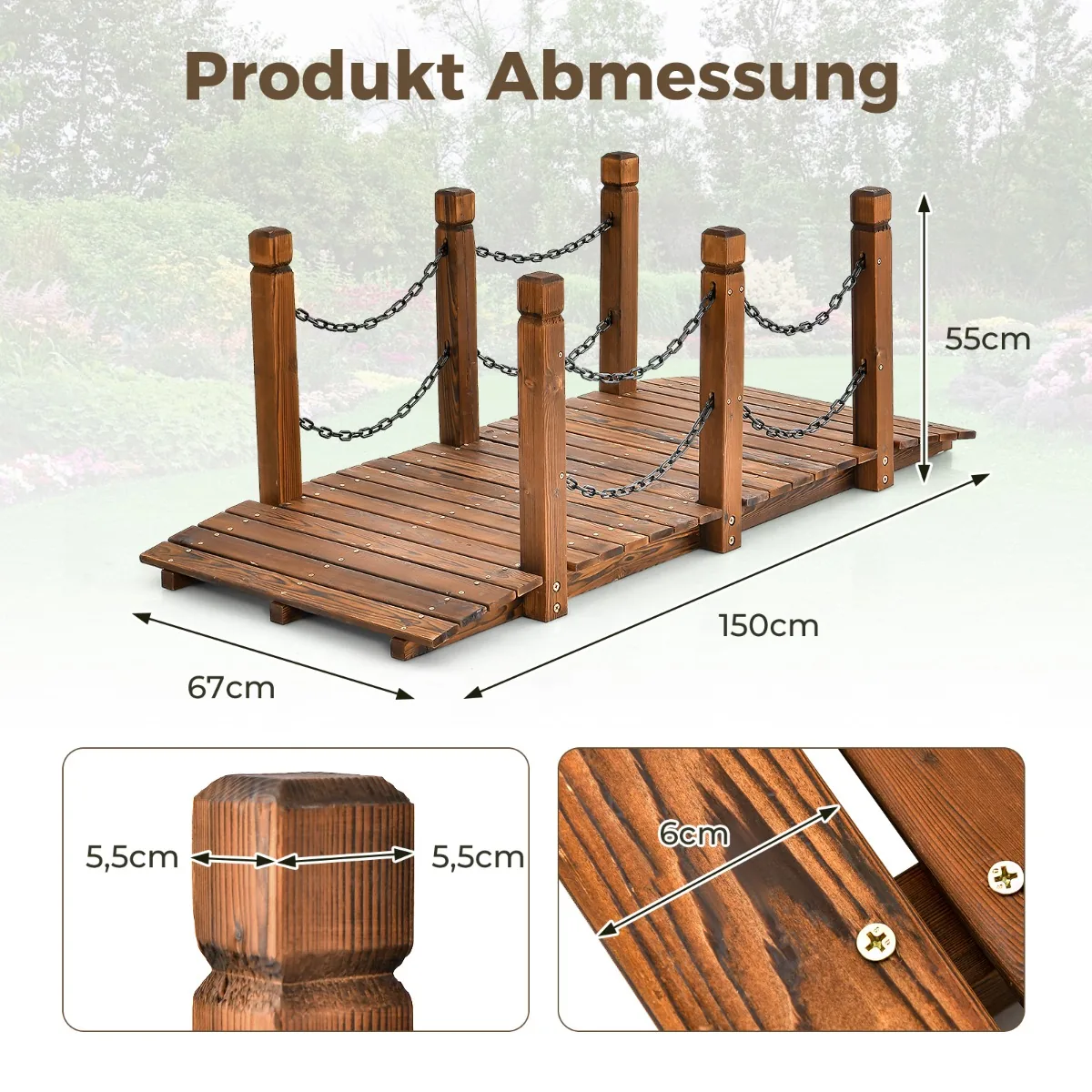 - Medinis paviršius yra neperšlampamas, todėl tiltas tinkamas naudoti lauke.