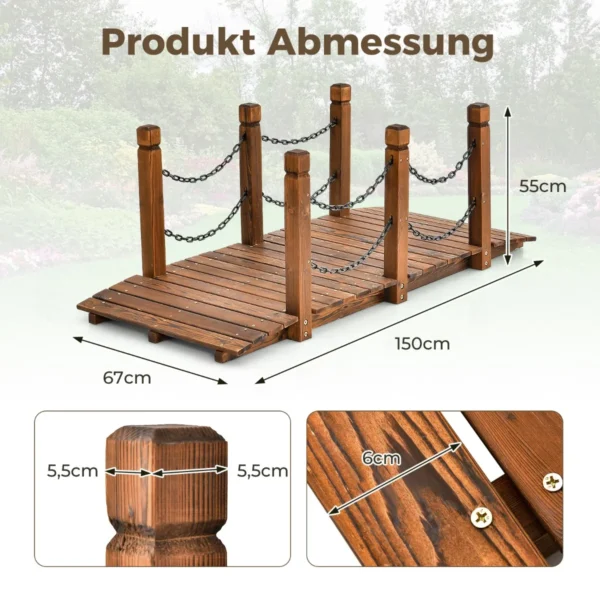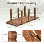 Sodo tiltas 150x67x55cm rudos spalvos puikiai tinka lauko sodams, tvenkiniams ar kitiems želdinių dekoravimams. Pagamintas iš natūralios eglės medienos, šis tiltas užtikrina patvarumą ir stabilumą net ir naudojant lauke ilgą laiką.