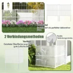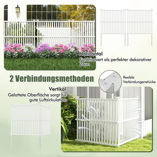 Sodo tvora 113x114cm, baltos spalvos, yra praktiškas sprendimas jūsų lauko erdvei. Ši tvora pagaminta iš patvaraus PVC ir metalo, leidžia lengvai montuoti be tranšėjos bei užtikrina stabilumą net ir minkštoje žemėje. Universalus grotelių dizainas padeda palaikyti gerą oro cirkuliaciją, todėl tvora tinka ne tik kaip lauko aptvaras, bet ir oro kondicionierių apsauga ar privatumo ekranas.