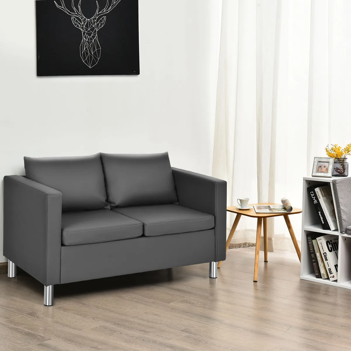 Dvivietė sofa 120x60x62,5 cm tamsiai pilkos spalvos idealiai tinka namų ar biuro interjerui. Ši kompaktiška sofa pasižymi patogumu ir tvirtumu, užtikrindama kokybišką poilsį bei ilgaamžiškumą.