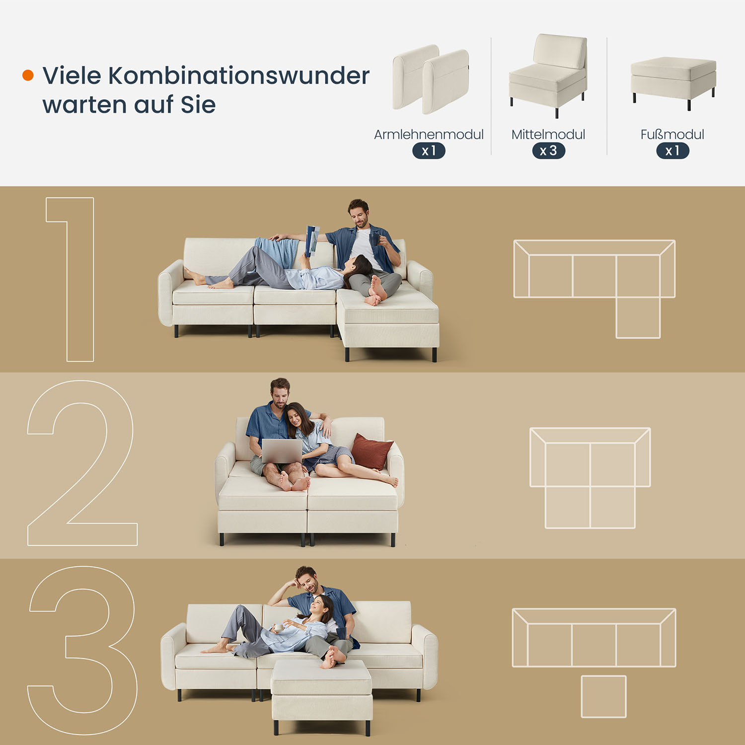- Kiekvieno vidurinio modulio dydis: 79 x 73 x 85,6 cm (D x P x A)