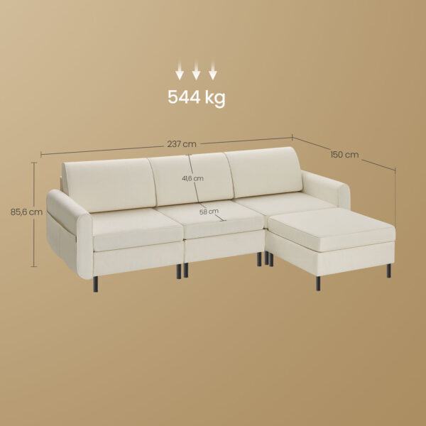 - Dydis (L forma): 150 x 237 x 85,6 cm (D x P x A)
