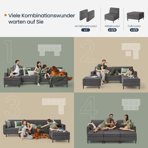 - Kiekvieno vidurinio modulio dydis: 79 x 73 x 85,6 cm (D x P x A)