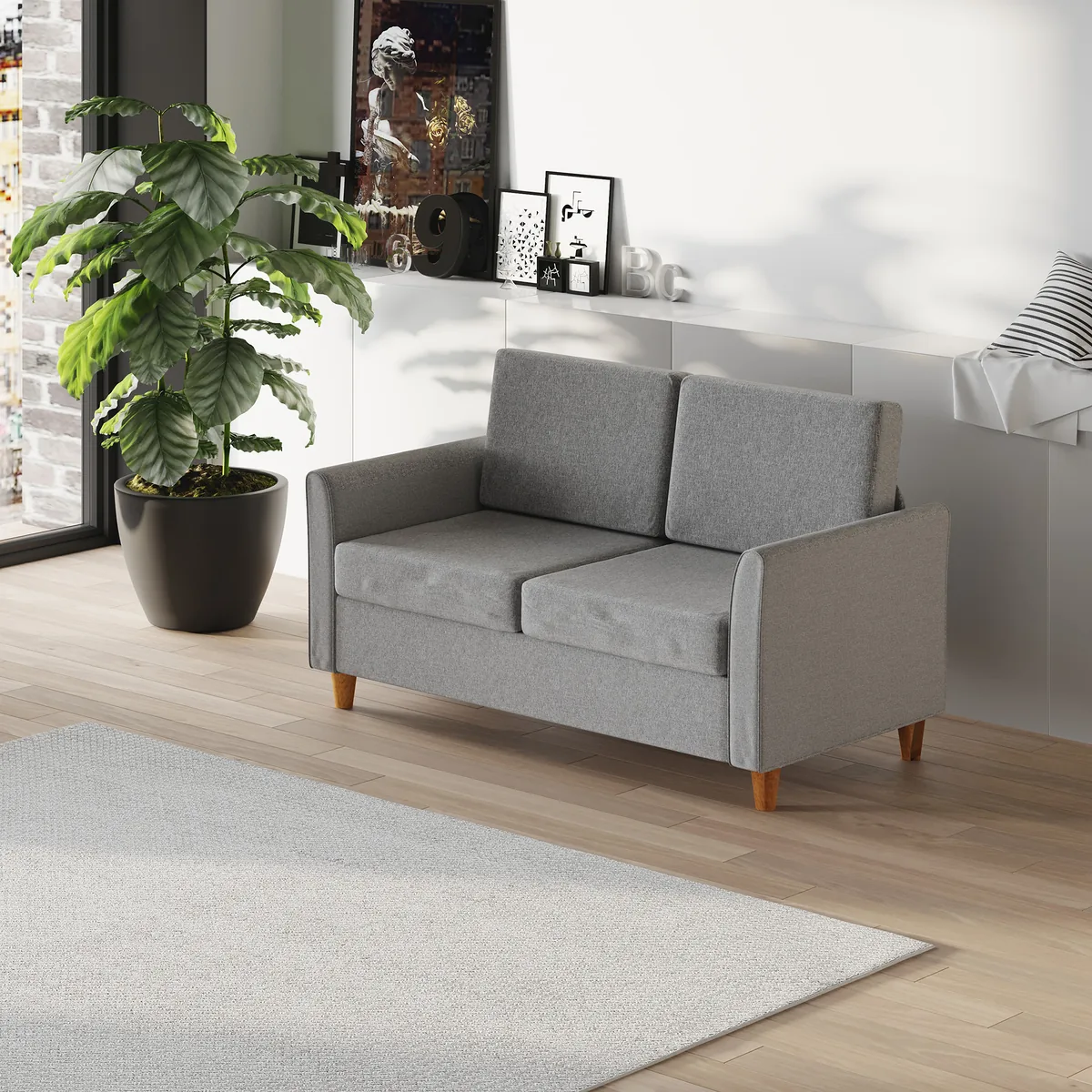 Ši graži, paprasta HOMCOM dvigulė sofa yra puikus pagrindas kitam kino vakarui, žaidimų popietei ar tiesiog jaukiam sekmadieniui su gera knyga. Plati sėdynė suteikia vietos iki dviejų žmonių, kurie dėl storai paminkštintos sėdynės ir nugaros pagalvėlių gali jaustis tikrai patogiai. Lengvai prižiūrimas lininis užvalkalas, tvirtas medžio masyvo rėmas ir medžio masyvo kojelės susijungia ir sukuria prašmatnų, kompaktišką baldą, kuris praturtins jūsų namus ne tik funkcionalumu, bet ir stiliumi.
