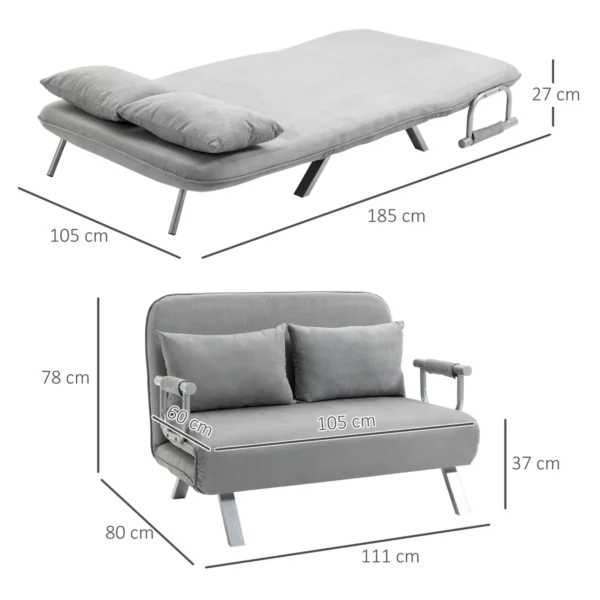Atraskite didžiausią komforto patirtį su HOMCOM dvivietė sofa su miego funkcija! Šis universalus baldas iš elegantiškos sofos akimirksniu virsta jaukia lova – idealiai tinka spontaniškam snaudimui ar nakvynei. Aukštos kokybės milteliniu būdu dengtas metalinis sofos rėmas užtikrina stabilumą, o aksominis užvalkalas ir minkštas paminkštinimas – prabangų komfortą. Nuimamas medžiaginis užvalkalas leidžia lengvai valyti.