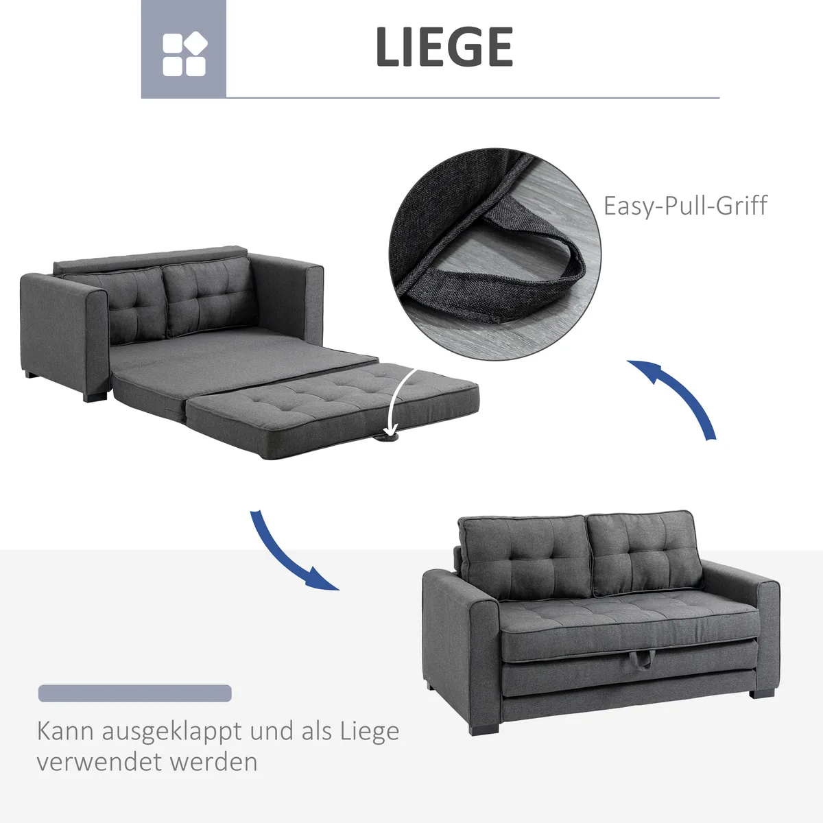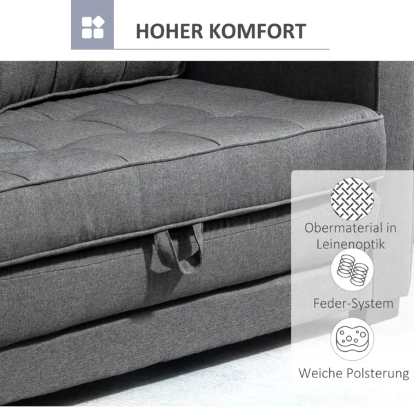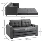 Ši HOMCOM miegamoji sofa idealiai tinka trumpam miegui tarp jų arba kaip svečių lova. Sofą galima lengvai ištraukti ir paversti patogia lova. Rėmas, pagamintas iš tvirto medžio masyvo, užtikrina stabilumą, o platus, minkštas paminkštinimas – patogiai sėdėti ir gulėti. Dėl kompaktiško dydžio ši sofa-lova idealiai tinka mažoms svetainėms arba svečių kambariui.