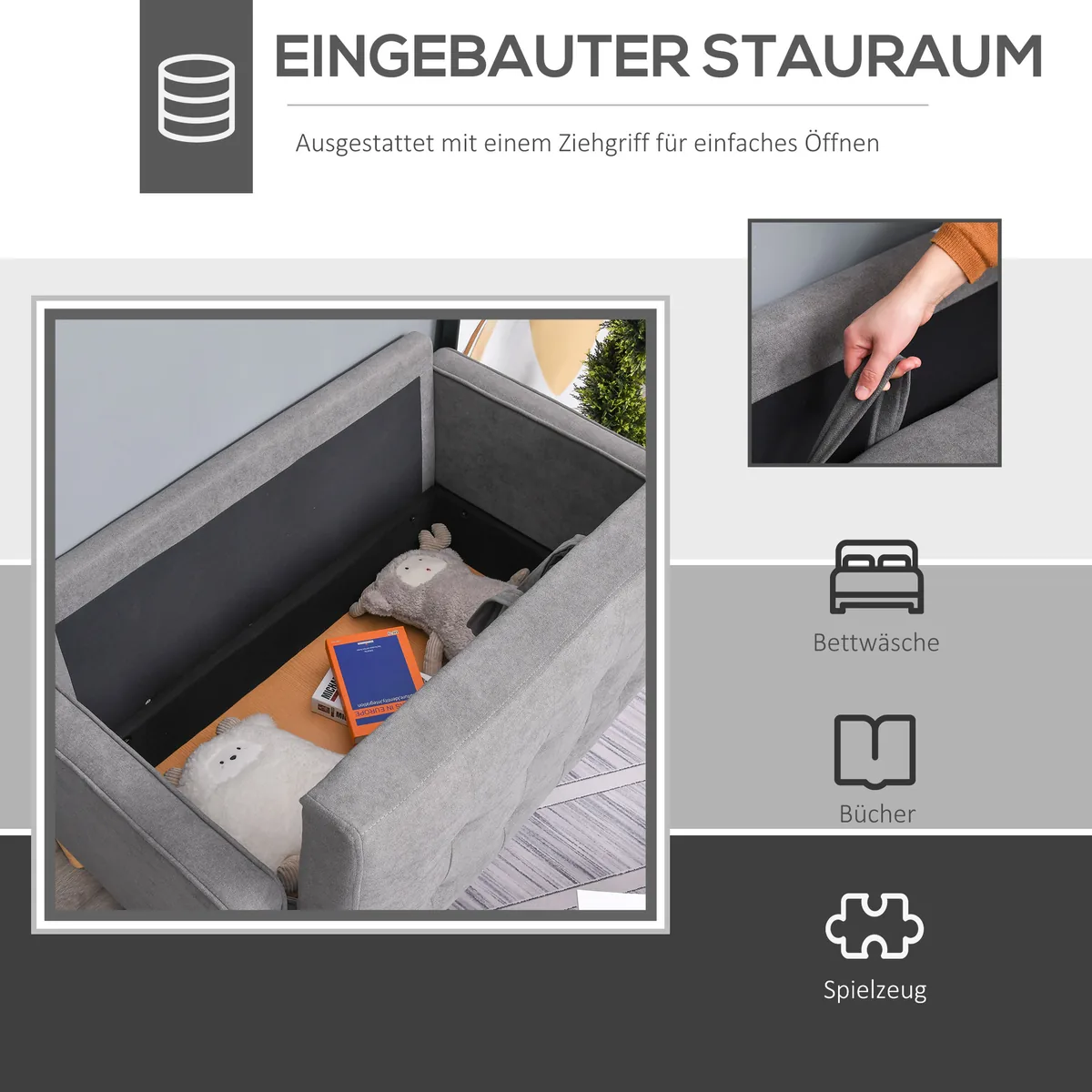 ✔ Po sėdyne paslėpta saugykla suteikia pakankamai vietos patalynei, knygoms ir kasdieniams daiktams ✔ tvirtai laikosi atlošas