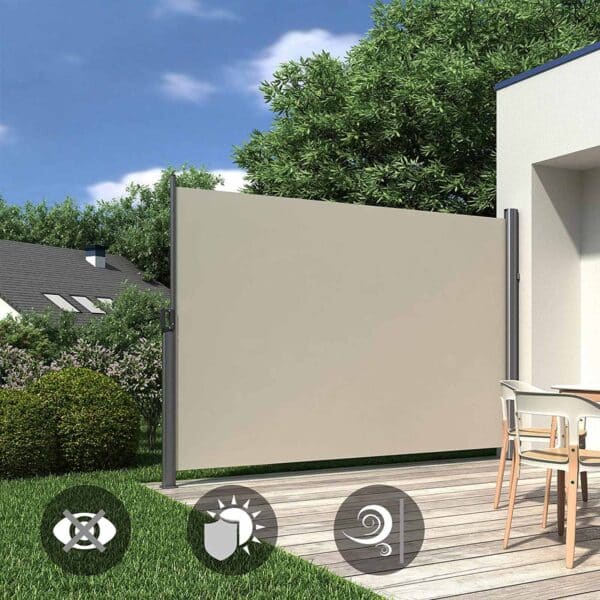 Lengvas surinkimas ir valdymas užtikrinamas pridedamomis surinkimo instrukcijomis. Sumontavus šoninę markizę, ją lengva naudoti ir greitai susukti, kai jos nebereikia. Susukite markizę pučiant stipriam vėjui, smarkiai lyjant ar sningant, kad galėtumėte ilgai mėgautis privatumo ekranu.