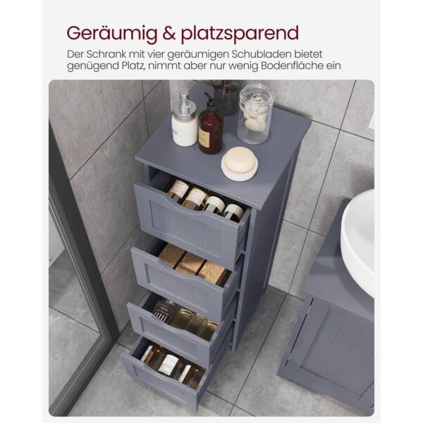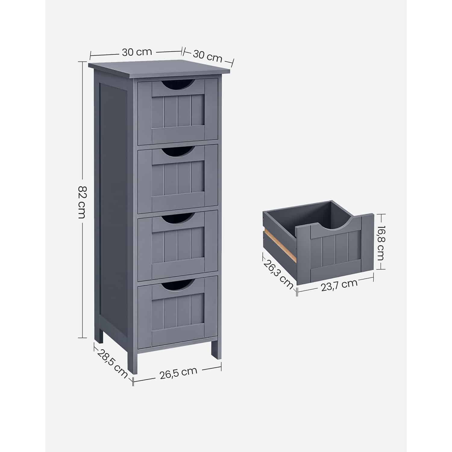 Ši spintelė yra ne tik graži, bet ir labai praktiška. Keturi erdvūs stalčiai suteikia daug vietos daiktams laikyti, todėl jūsų namai visada bus tvarkingi ir organizuoti.