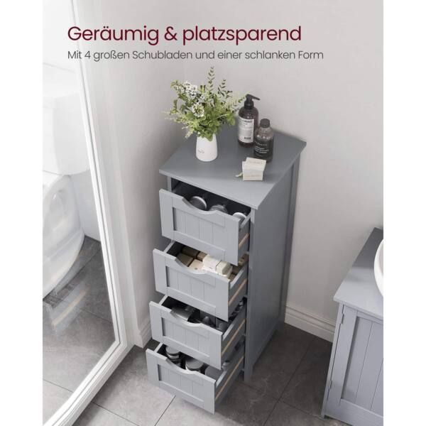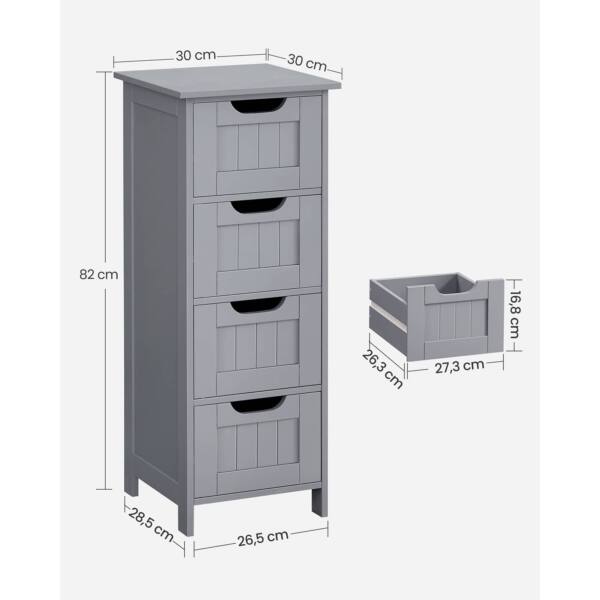 Ši tamsiai pilkos spalvos šoninė spintelė su 4 stalčiais yra puikus pasirinkimas jūsų namų ar biuro interjerui. Jos elegantiškas dizainas ir funkcionalumas padės palaikyti tvarką ir suteiks papildomos vietos daiktams laikyti.