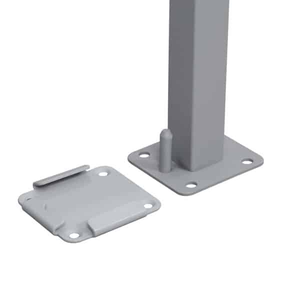 Pristatymo komplektacijoje yra pagrindo flanšas, skirtas šoniniam stulpui pritvirtinti. Saugumo sumetimais, kai nenaudojate markizės, uždenkite laikymo įtaisą pridedamu apsauginiu dangteliu. Flanšo beveik nebesimato, todėl jis netrukdo estetikai.