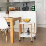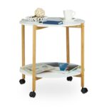 Šoninis stalas su ratukais ir 2 lentynomis