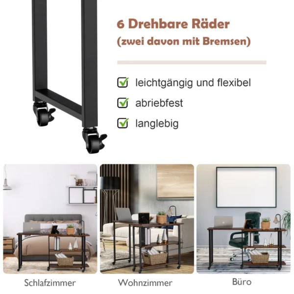 Šoninis staliukas 101×82,5×72,5 cm rudos ir juodos spalvos – praktiškas sprendimas namams ar biurui. Dėl 360° besisukančio dizaino ir didelio stalviršio jis leidžia lengvai tvarkyti ir laikyti įvairius daiktus. Šis daugiafunkcis mobilus staliukas tinka įvairioms erdvėms ir užtikrina patogų priėjimą prie reikmenų.