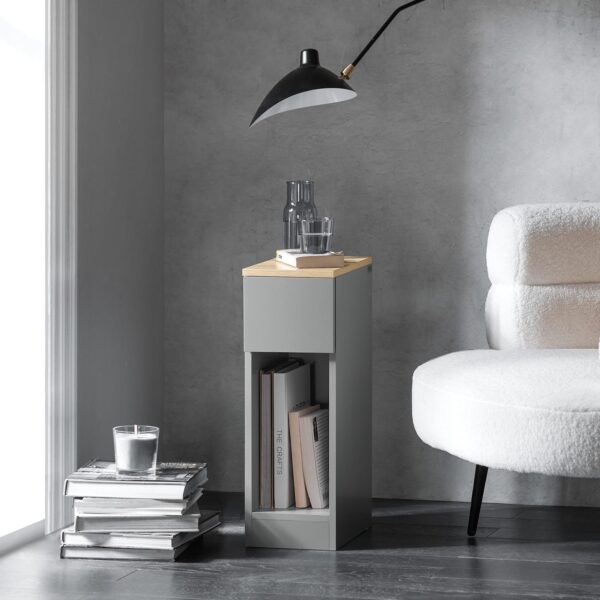 Staliukas turi stalčių ir lentyną, kurie padės organizuoti smulkius daiktus. Jis taip pat gali būti naudojamas kaip naktinis staliukas, telefono staliukas ar augalų stovas. Stalviršis puikiai tinka žadintuvui ar dekoratyviniams daiktams, tokiems kaip vazos, nuotraukų rėmeliai ar kambariniai augalai, laikyti.