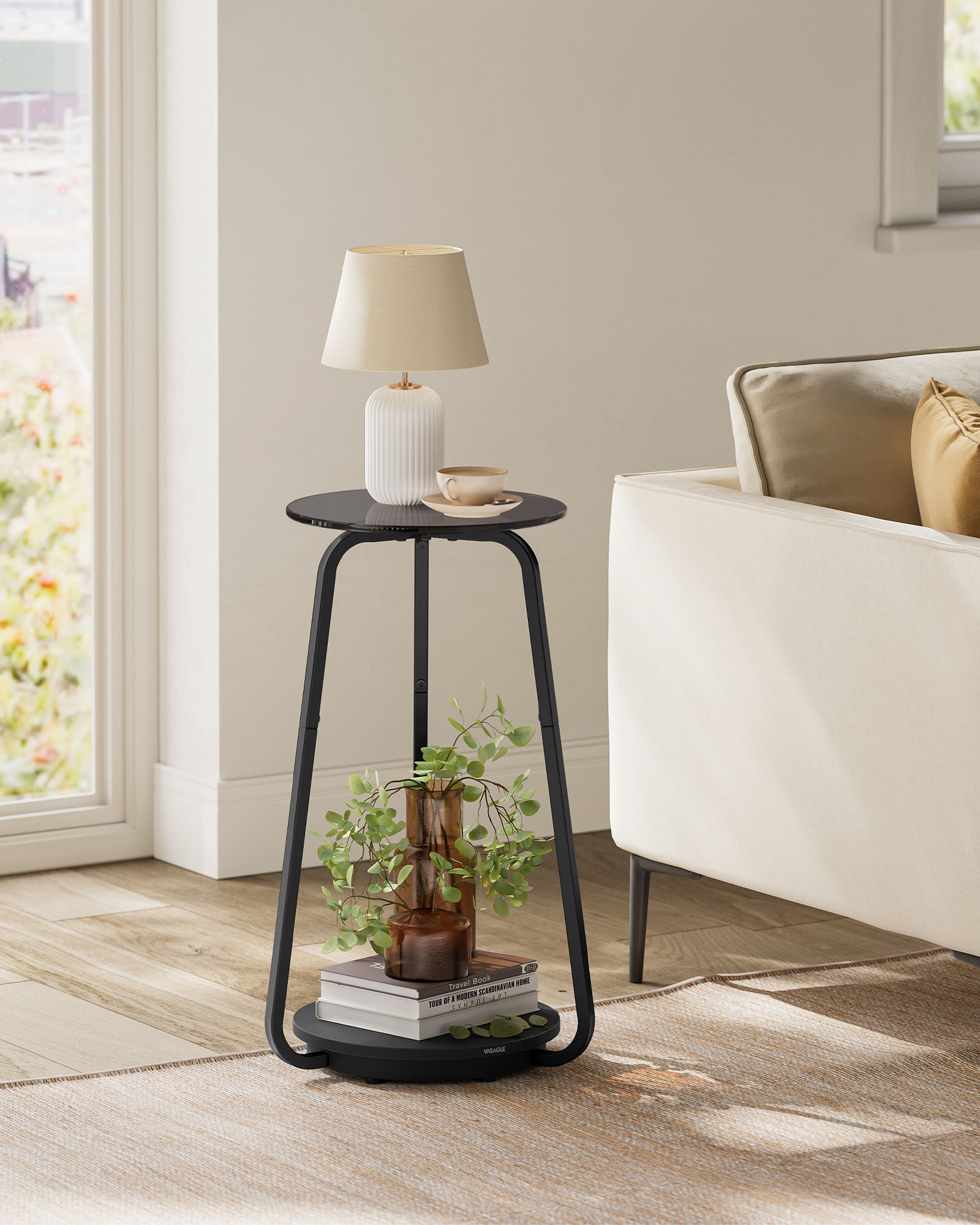Šis staliukas yra ne tik stilingas, bet ir praktiškas. Jo tvirta konstrukcija užtikrina ilgaamžiškumą, o grūdinto stiklo paviršius suteikia papildomo žavesio. Tai puikus pasirinkimas tiek svetainėje, tiek miegamajame ar bet kurioje kitoje erdvėje, kurioje reikia papildomos vietos daiktams laikyti ar dekoracijoms eksponuoti.