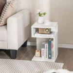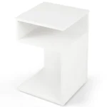 Šoninis staliukas 33x33x50cm, baltos spalvos – praktiškas baldas, kuris padeda efektyviai sutvarkyti daiktus įvairiose patalpose. Dėl kompaktiškų matmenų ir neutralios spalvos jis tinka tiek svetainei, tiek miegamajam ar darbo kambariui. Staliukas turi du atvirus skyrius ir tvirtą konstrukciją, užtikrinančią ilgaamžiškumą.