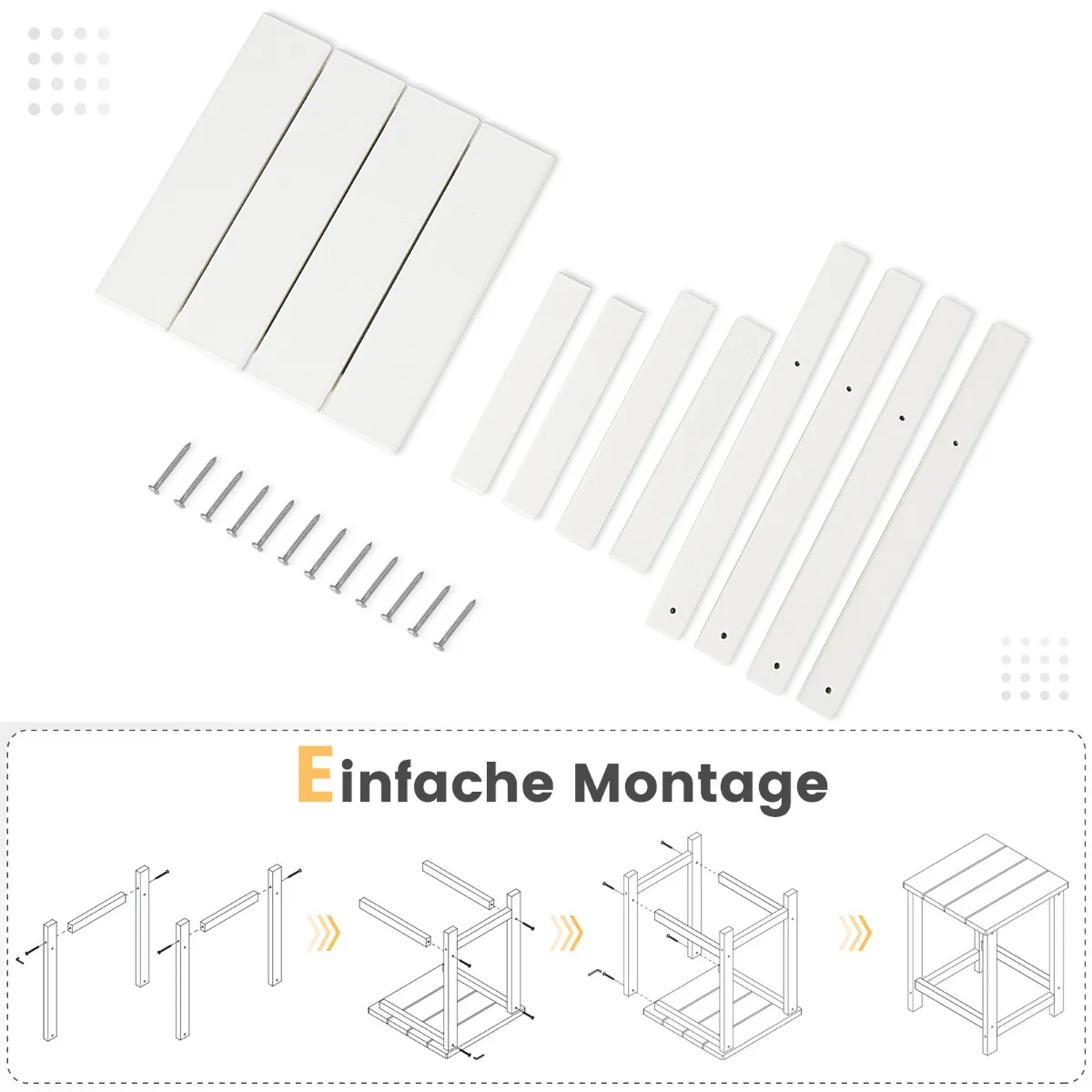 Šoninis staliukas 36x36x47 cm, baltos spalvos, skirtas lauko ir vidaus naudojimui. Pagamintas iš patvarios HDPE medžiagos, atsparios oro sąlygoms, vandeniui bei saulės spinduliams, šis staliukas puikiai tinka lauko baldams, tokiems kaip Adirondack kėdės ar sofos.