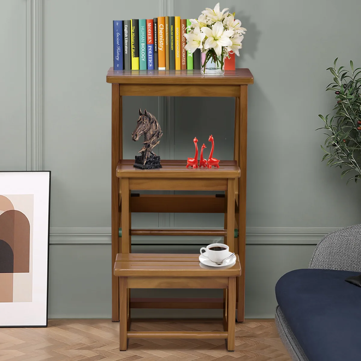 • Universalus naudojimas – taburetė, kopėčios ar dekoratyvinė lentyna.