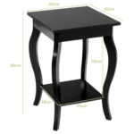 Šoninis staliukas 40x40x60 cm juodos spalvos yra praktiškas sprendimas papildomai sandėliavimo vietai namuose. Dviejų pakopų atviros lentynos leidžia laikyti įvairius daiktus tvarkingai ir patogiai pasiekti. Šis kampinis šoninis staliukas tinka naudoti svetainėje, miegamajame ar biure.