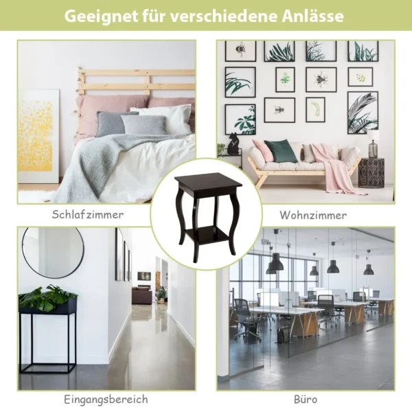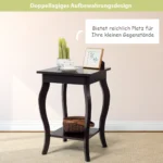 Šoninis staliukas 40x40x60 cm, tamsiai rudos spalvos, puikiai tinka įvairioms namų ar biuro erdvėms. Šis kvadratinis šoninis staliukas su dviejų pakopų lentynomis suteikia papildomą sandėliavimo vietą ir padeda palaikyti tvarką kambaryje. Jo tvirtas dizainas ir praktiškos detalės užtikrina ilgaamžiškumą ir patogumą kasdienėje naudotoje.